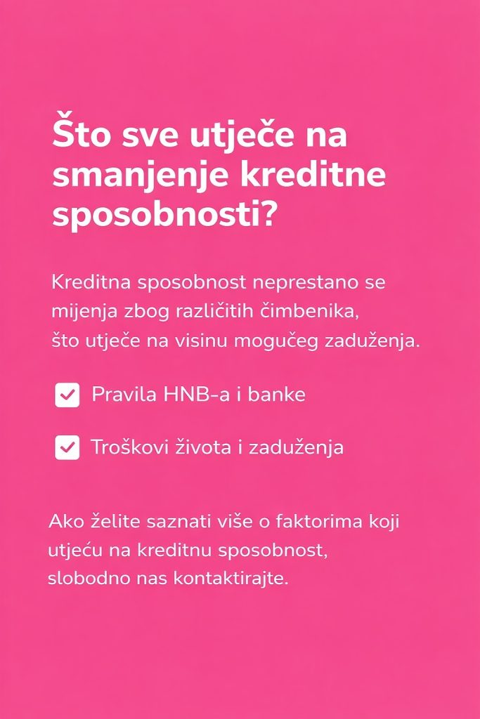 Kreditna sposobnost jedan je od najvažnijih faktora pri odobravanju kredita, no mnogi klijenti nisu svjesni da se ona može promijeniti i bez promjene visine plaće. Razumijevanje čimbenika koji na nju…